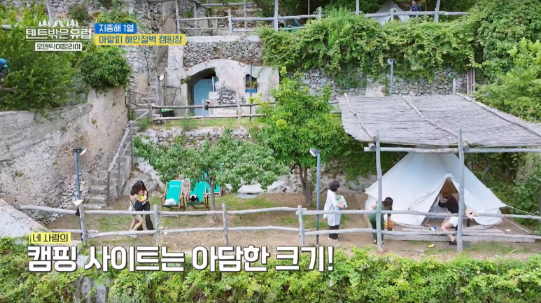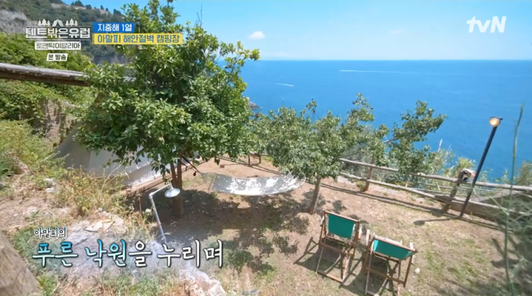 아말피의 매력은 해안도로뿐만이 아닙니다. 절벽 위에 위치한 캠핑장에서의 하룻밤은 평생 잊지 못할 추억으로 남습니다. 절벽 위에서 바라보는 푸른 바다와 그 아래 펼쳐진 풍경은 마치 천국과도 같은 느낌을 줍니다. 이번 여정에서는 미리 준비된 인디언 텐트에서 하룻밤을 보내며, 야외에서의 모험을 만끽했습니다. 캠핑장은 아름다운 풍경을 자랑하지만 그만큼 계단이 많아 불편함도 따릅니다. 그러나 이곳에서 내려다보는 절경은 모든 불편함을 잊게 만들어 줍니다.