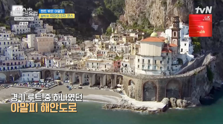 TVN 예능 '텐트 밖은 유럽 로맨틱 이탈리아' 아말피 해안 도로는 많은 이들이 죽기 전에 꼭 한 번 가봐야 할 명소로 꼽히는 장소입니다. 이곳의 도로는 해안 절벽과 푸른 바다 사이로 뻗어나가며, 끝없이 펼쳐진 절경을 배경으로 드라이브를 할 수 있는 곳입니다. 특히 아말피 해안 도로는 유네스코 세계문화유산으로 등재되어 있을 만큼 자연경관이 아름다우며, 세계 3대 도로 사이클 대회인 '디탈리아'의 주요 루트로도 사용됩니다. 좁고 굽이진 도로에서는 작은 차량과 스쿠터, 자전거가 주로 이용되며, 특히 이 좁은 길에서 운전을 처음 시도하는 이들에게는 꽤나 아찔한 경험이 될 수 있습니다.